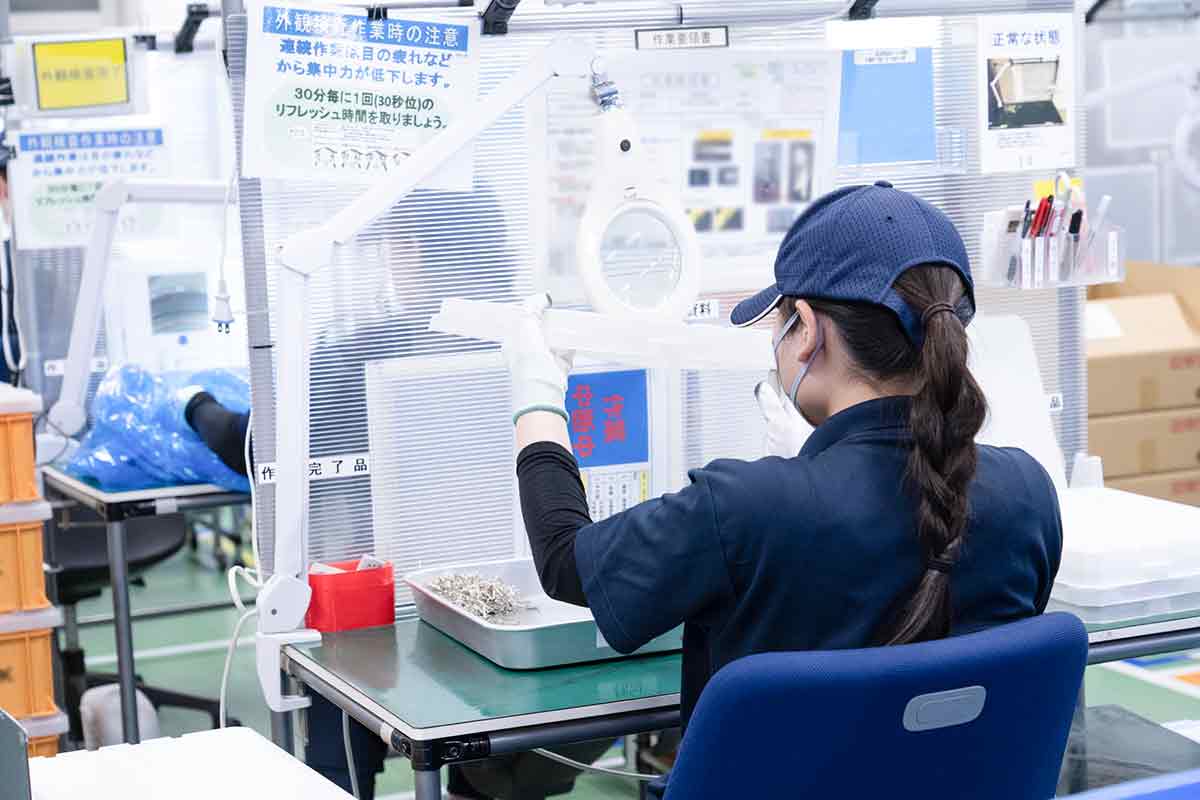 例えば、検査でいうと「ただ見ている」のではなくて、いくつかのプロセスに分けて検査をしています。間違いが起こらないようにプロセス毎に教育係が丁寧に教えて、作業を覚えた頃にテストを行います。テストをクリアしてから独り立ちするので、不安なく業務にあたることができると思います。