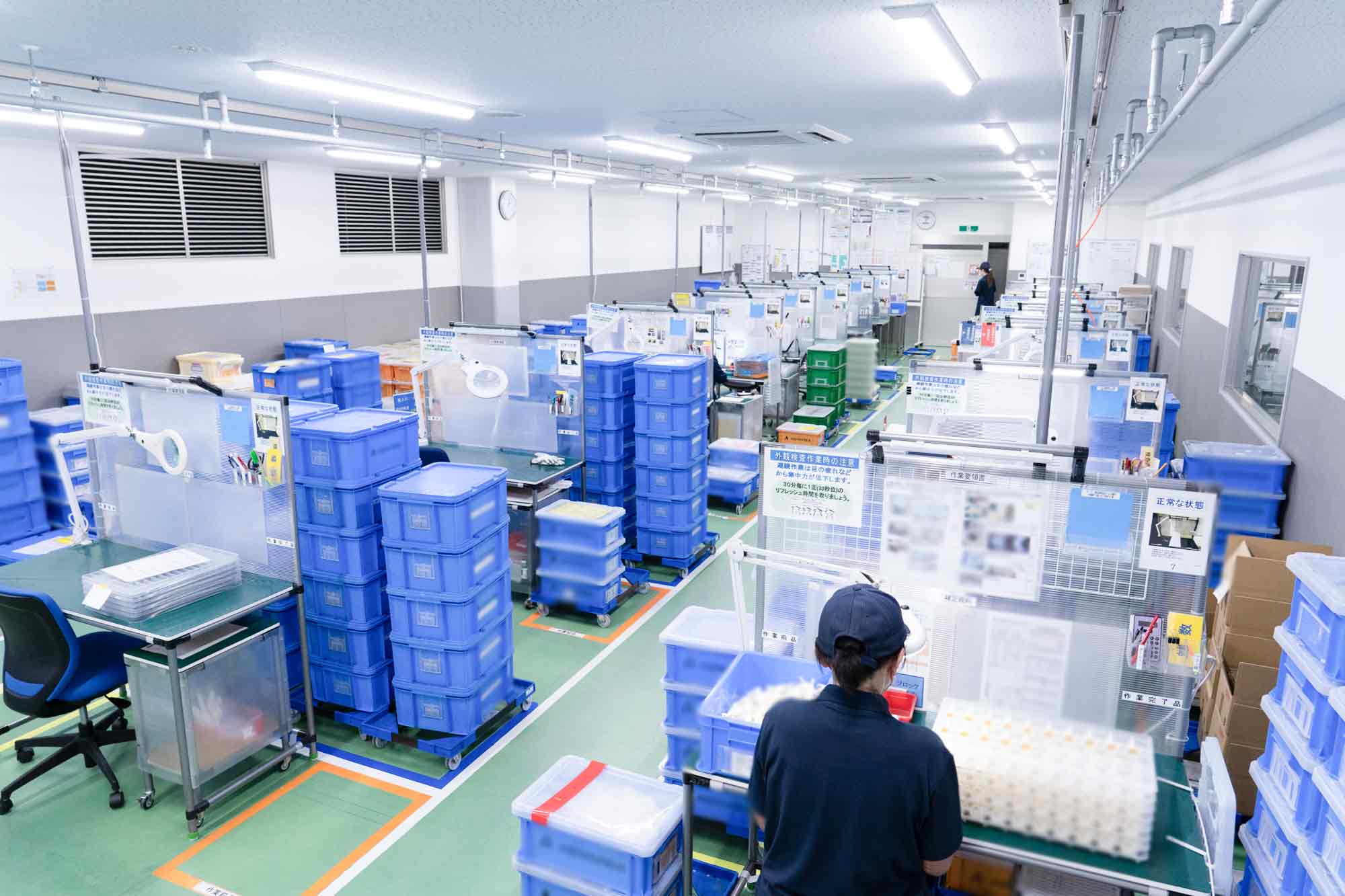 最新設備が整った、とてもきれいで明るい工場です。冷暖房完備なので、最適な環境でお仕事に集中できます。